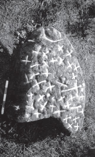 Roche aux croix de Folcheran, Ardèche, France. R. Agnel Revue du GERSAR n°30.
