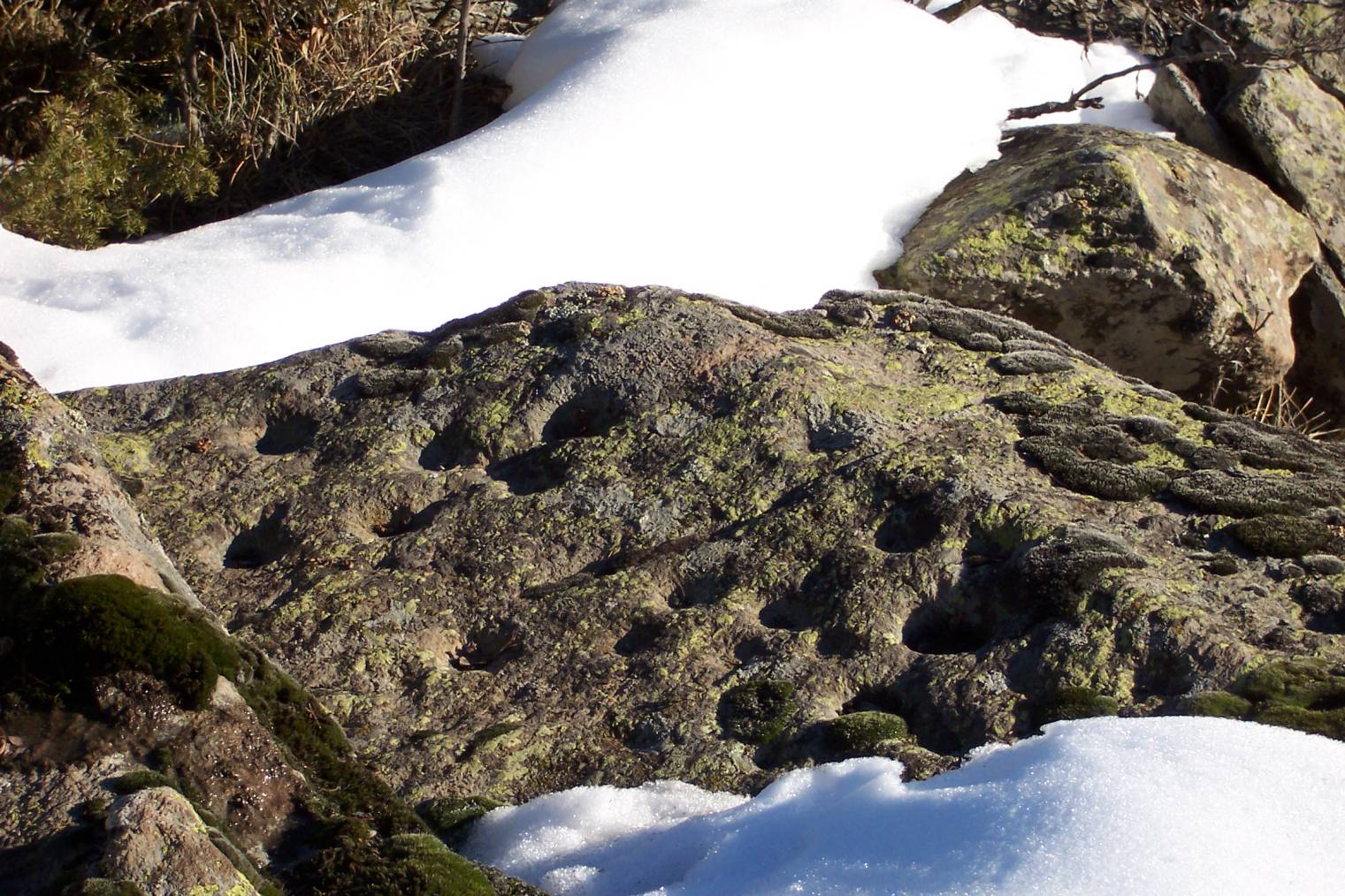 Lieu : Les Noys MONETIER-LES-BAINS LE - MONETIER-LES-BAINS L BRIANCONNAIS - 05 - FRANCE Altitude = 1680 m lat: 45.0046106, long: 6.4218805 qualité de la position : "4", afficher sur la carte Matière = gres houiller Une quarantaine de cavités. La plupart sont groupées sur une surface bien délimitée à l'exception de 2 d'entre elles, très excentrées. La quasi-totalité de ces cavités est circulaire mais 3 d'entre elles sont en forme de rainures Trouv. en 1985 par D. Mercier, ingénieur de recherche géologique, à l'occasion des relevés effectués pour la carte géologique. Descriptif complet entre juil. 2000 et mai 2001. Cette pierre (2,80mx2,60m) fait partie d'un affleurement rocheux en place d'une longueur de plusieurs dizaines de mètres, formé par des grès typiques du houiller briançonnais. Il est situé sur la rive gauche de la Guisane, donc en adret. La pierre ne se trouve pas au bord d'un sentier allongées. 2 de ces rainures sont jumelées. Les rainures sont très profondes et lisses - Ressemble, mais en miniature à la "Pierre aux Pieds" de la Maurienne (alt.: 2.740m) longitude: 4,67 grades latitude: 49,97 grades (carte IGN) - Bibliographie : Lestournelle R., 2001 - Rédacteur : A.Bocquet |