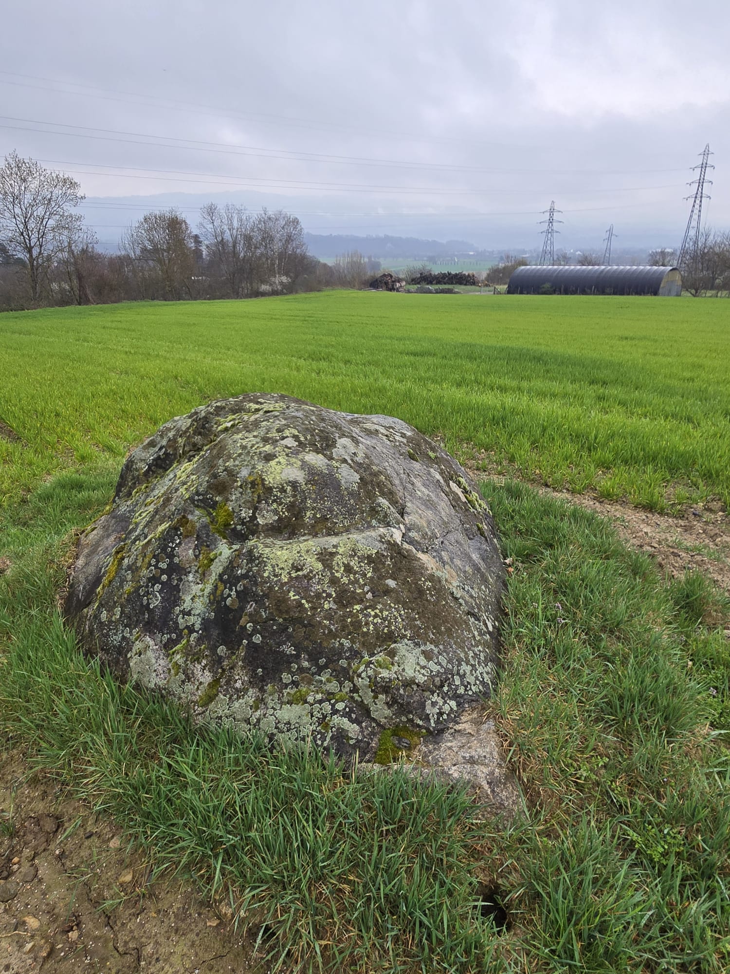 Lieu : TRAMOLE - ST-JEAN-DE-BOURNAY BAS DAUPHINE - 38 - FRANCE Altitude = 480 m lat: 45.5153752, long: 5.2480834 qualité de la position : "4", afficher sur la carte 10 cupules (>10) Sur le bord même du chemin, à l'est de la ferme de Bessy. Possibilité liaison avec domaine GR de Boirieu. Carte 1/25.000e, La Côte-Saint-André 3-4 Renseignements: H. Chatain Bibliographie : Chauffin J., 1959 Gallia-Préh., 1980. t. 23, fasc. 2. p. 509 - Rédacteur : A.Bocquet |